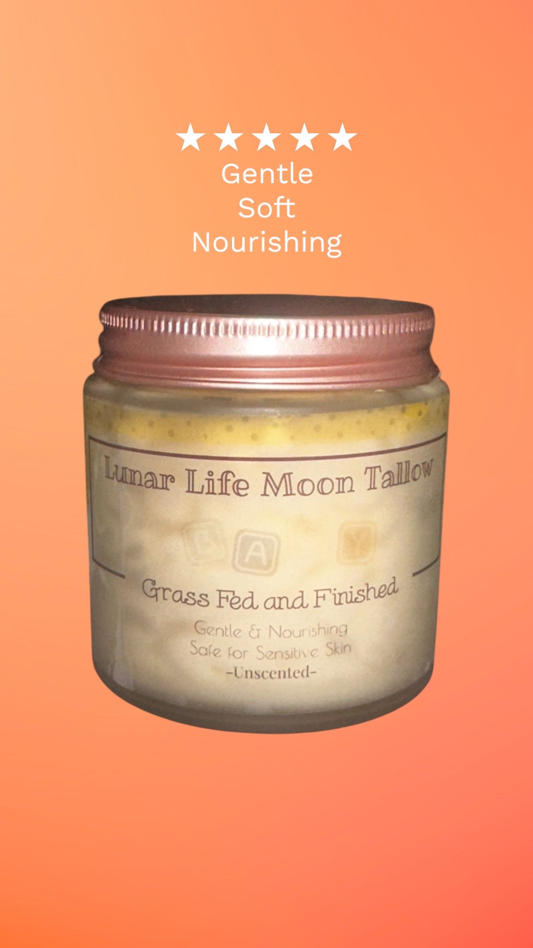 Inspired by the gentle glow of the moon, this pure and natural balm is crafted with only two simple ingredients: grass-fed, finished tallow and organic jojoba oil.